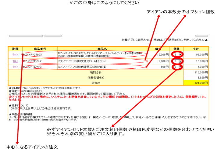 ※本数は、オーダーしたアイアンセットの本数分と同じ本数を買い物かごに入れてください